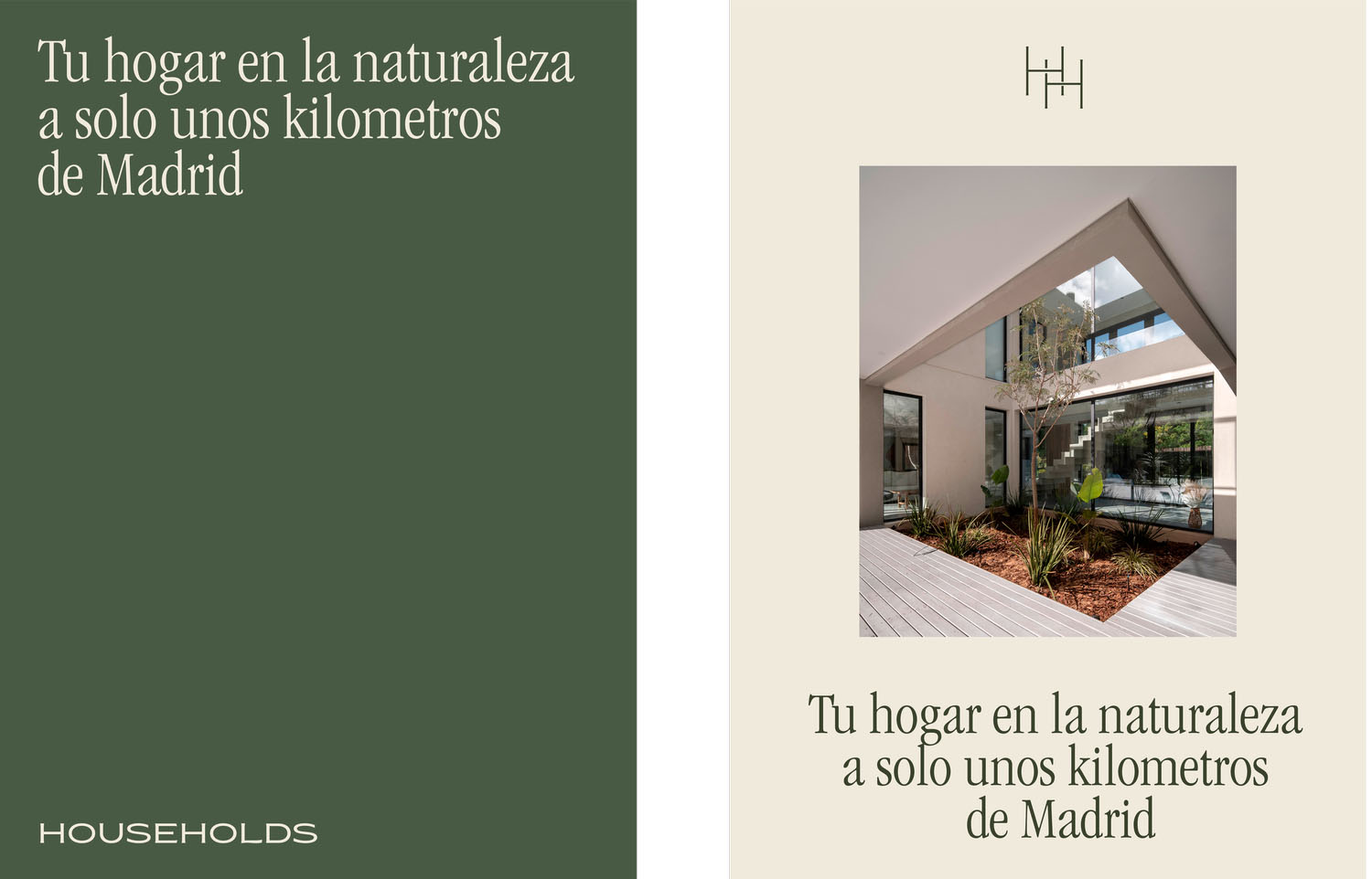 For Households, a real estate company specializing in luxury home construction in the natural areas of Madrid, we crafted a new brand identity to be used across all platforms. Our primary focus was on designing layouts that set the comprehensive guidelines for various print, media, and digital materials, ensuring consistency in style for all future marketing campaigns.The new responsive brand identity was carefully aligned with Households’ vision of blending luxury with nature.
